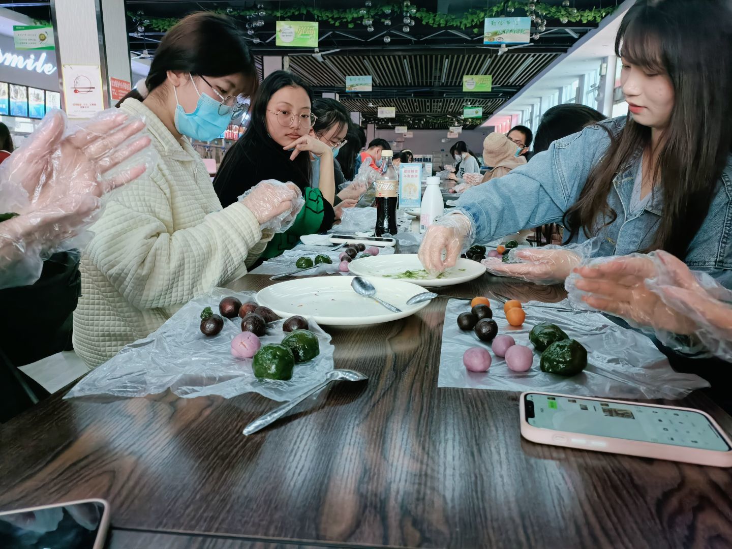 道远日暮,百鸟归林。铿锵笔墨写“清明”,凝香纸砚寄哀思。赛亭身侧,珍珠湖旁,是青年书法协会在此挥毫。恰同学少年,风华正茂,书生意气,挥斥方遒。 虽逢时疫,无以归家。“清明时节忆先烈,齐做青团暖人心”。食品科学协会于三食堂一楼举办手包青团活动,让思念故土的心绪得以妥善安置。