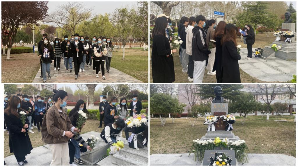 晨光熹微,步履不停。“清明时节雨纷纷,路上行人欲断魂。”在孟二冬精神研究协会的带领下,我校学子迎着春风于孟二冬雕塑前献上花朵。“坐冷板凳,做真学问”,清明时节寄哀思,鲜花一朵告天知,慎终追远,民德归厚矣。清明追忆故人,书信遥寄相思。