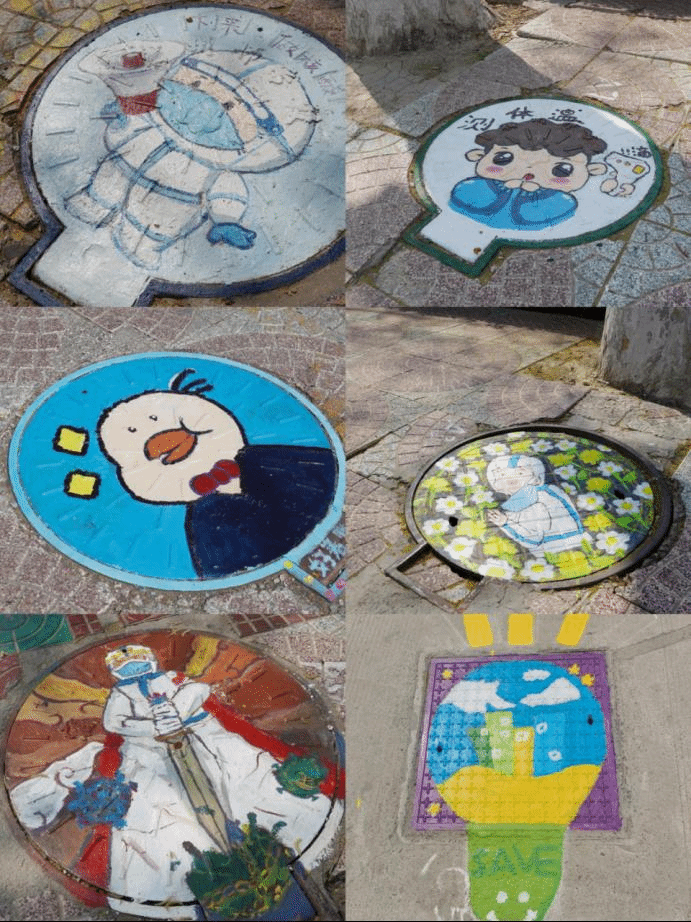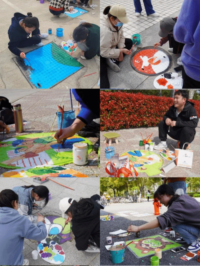 本次“井”上添花活动分为四个主题:“携手抗‘疫’”“青春梦想”“勤俭节约”“自立自强”,各参赛队伍按照主题绘画。活动中,同学们想象丰富,大胆创意,尽显绘画功底,作品生动有趣,绘画者在表达自己想法的同时,也为路过的人送去了一天的好心情。