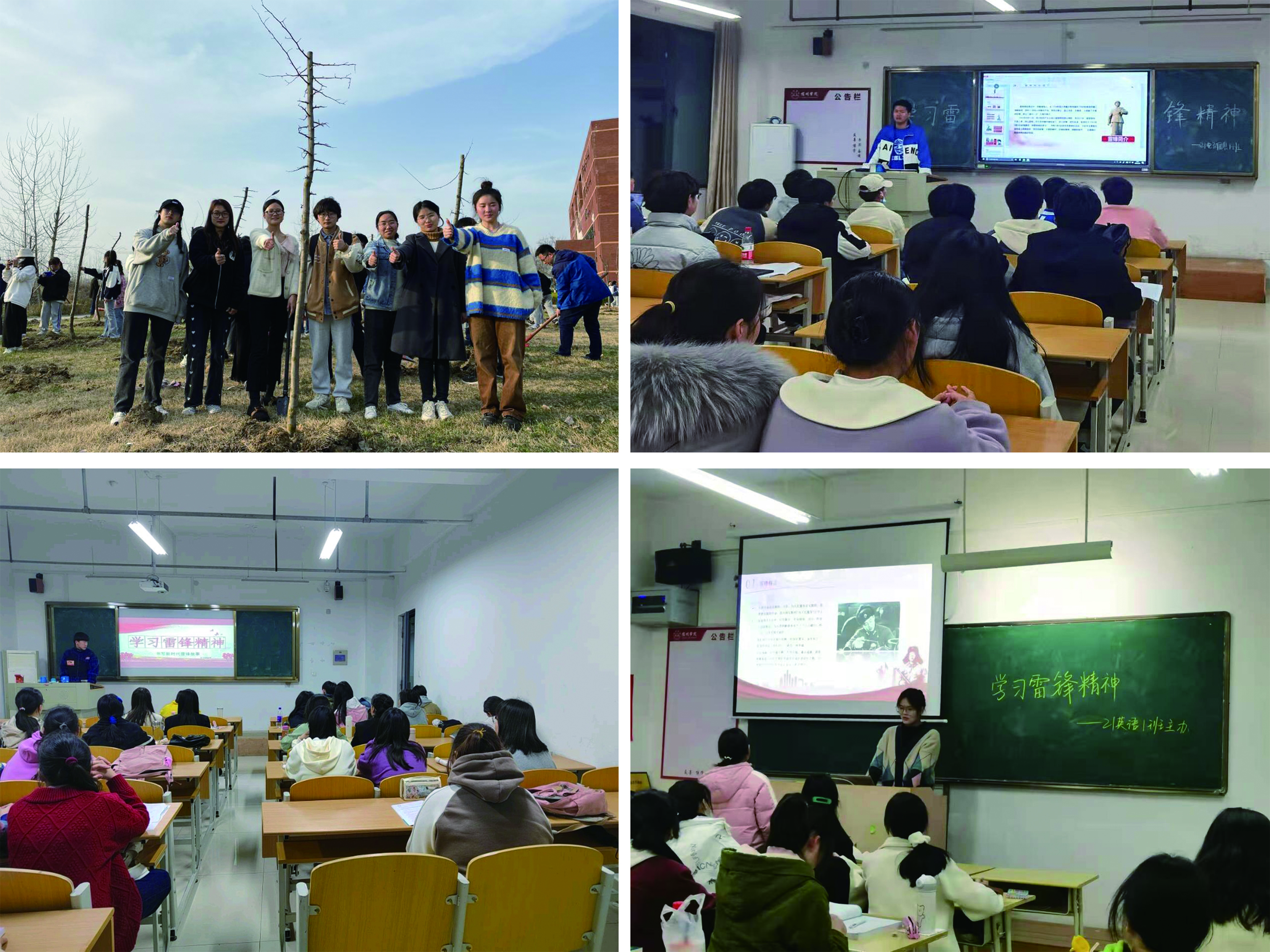 21汉语言文学1班组织开展了“学雷锋义务植树”活动,增强大家植绿、护绿、爱绿的绿色发展理念和环保意识,同学们积极参与,在实践活动中展现雷锋精神。21电子信息、21旅游管理等班级分别开展“学习雷锋精神”主题团日活动,采用PPT的形式讲解雷锋个人事迹、雷锋精神,阐述了新时代弘扬雷锋精神的积极作用,通过班委为同学们讲解雷锋故事,带领同学们更好地传承雷锋精神。
