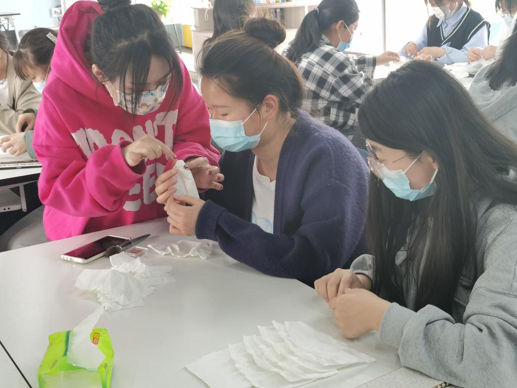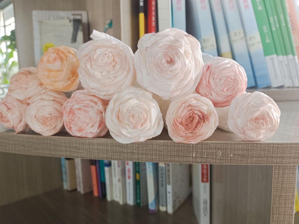 白纸折的玫瑰花打上腮红,瞬间便多了几分妖艳,正如今天的同学们正值花样年华。这次的活动虽然很快就结束了,但相信同学们今天的收获一定远不止于此,大家从这次活动中感受到了中国传统手工艺的魅力,体会到了创造的乐趣,也提升了自己的动手能力。