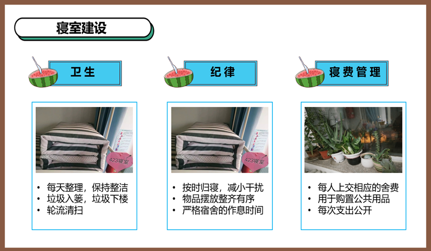 活动一为最美宿舍评比,该活动以“明之尚美,馨德亦缘”为主题,以宿舍为单位参与,参与人员需到到梦空间统一进行报名,填写申报表,并附上相关图片。此活动促使各宿舍成员能够自觉遵守校规校纪和学生公寓各项规章制度,进一步推进学生宿舍的安全管理,营造了简单大方,富有特色的宿舍文化氛围。