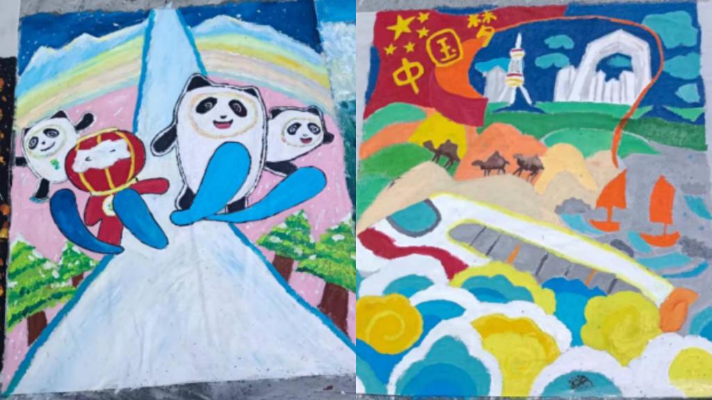 本次活动与党史学习教育紧密结合,绘画形式包括小组绘画和个人绘画,有色彩、手绘、素描等多种形式,分层次展现,现场队形排成100 字样。现场的百名学生共同绘画,同学们挥笔泼墨,以饱满的热情和认真负责的态度,尽可能使画卷更具艺术性,更有时代感。一幅幅生动形象的图画跃然“卷”上,红色主题、冬奥会吉祥物、建党百年等画作都在这百米长卷上一一展开。