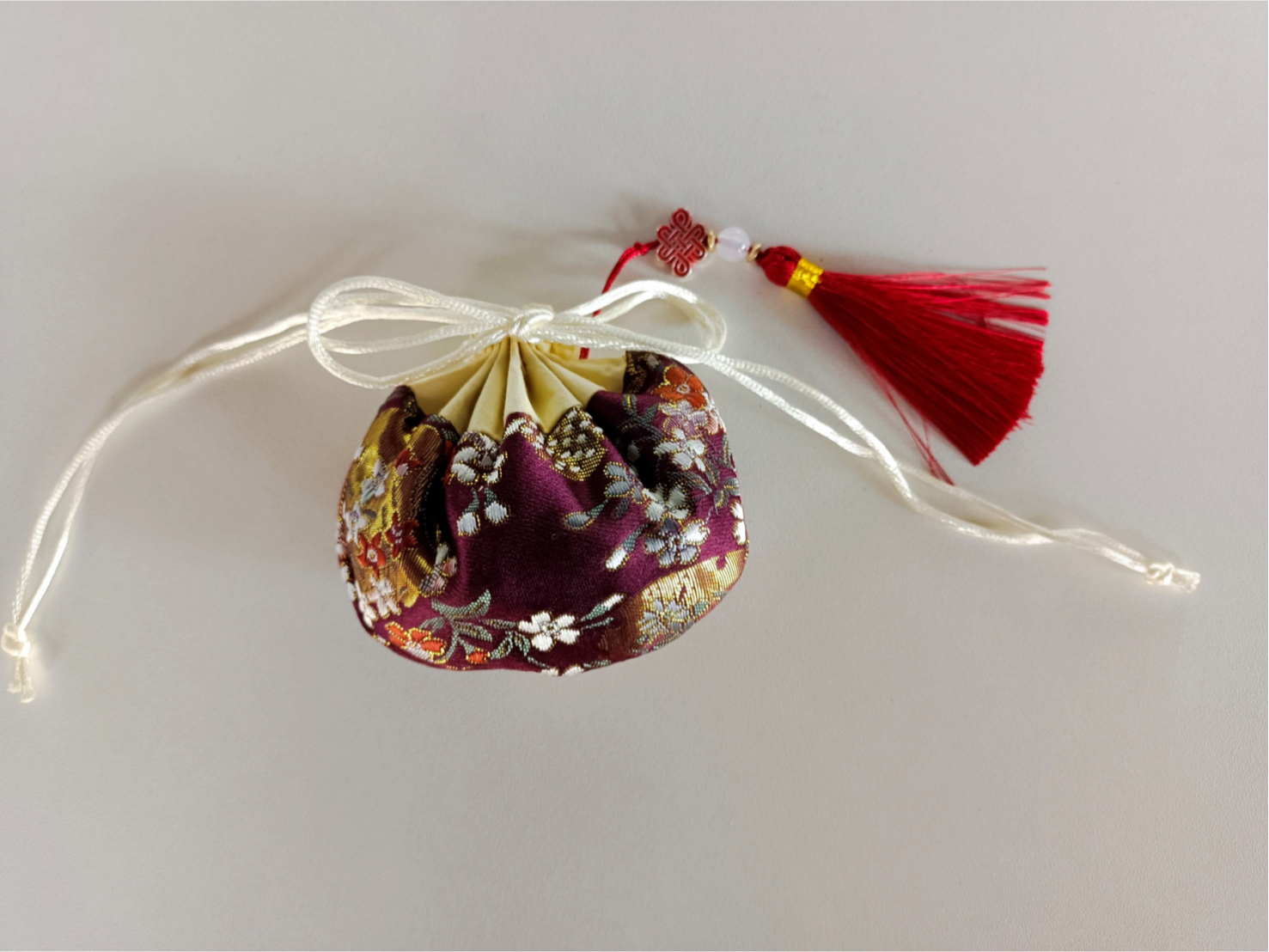 香囊是古代汉族劳动妇女创造的一种民间刺绣工艺品,是穿越千年而余韵为泯的汉族传统文化的遗存和再生。端午节前后,人们除了吃粽子、插艾叶之外,还会给孩子挂上香囊,香囊内装有朱砂、雄黄、白芷、丁香、甘草等中药,能驱邪避瘟,且有襟头点缀之风。在中国南方,青年男女还会用香囊来表达爱恋之意。