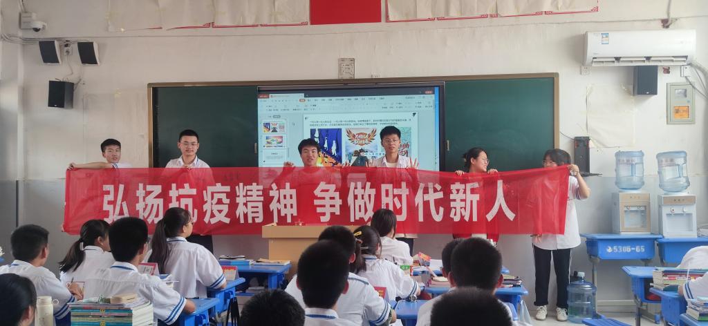 生物与食品工程学院实践团队前往安徽省宿州市萧县鹏程中学开展实践活动,开展了“弘扬抗疫精神,争做时代新人”的主题教育校园宣讲会,讲述抗疫精神以及当下疫情现状,如何做好防疫工作,弘扬抗疫精神永不褪色、奉献精神永放光芒,激励和哺育新一代青少年。
