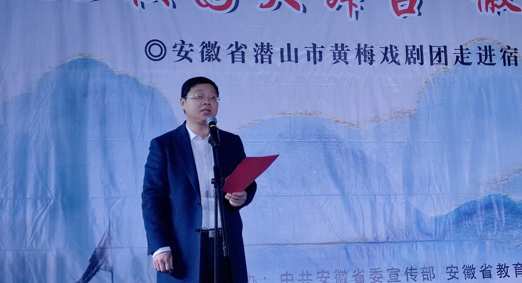 王俊上台致辞,对“校园大舞台——徽风皖韵进高校”活动来到我校表示热烈的欢迎,指出本次活动不仅是一场艺术的盛宴,更是美育的一种重要教育形式,希望观演师生珍惜这次宝贵的机会,进而加深对高雅艺术的理解和热爱,为弘扬和传播优秀民族文化发挥应有的作用。