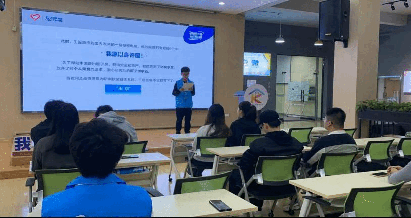 在活动中,宣讲人说到,我们要用好第二课堂传承和弘扬“两弹一星”精神,向同学们传递“两弹一星”工程诞生背后的人和事,我们不断认识到“两弹一星”精神和科学家精神的底色,是以国家民族命运为己任的爱国主义精神,在艰难困苦中,老一辈科学家们始终坚定科技报国使命,在铸就国之重器的同时,也为我们留下了宝贵的“两弹一星”精神。