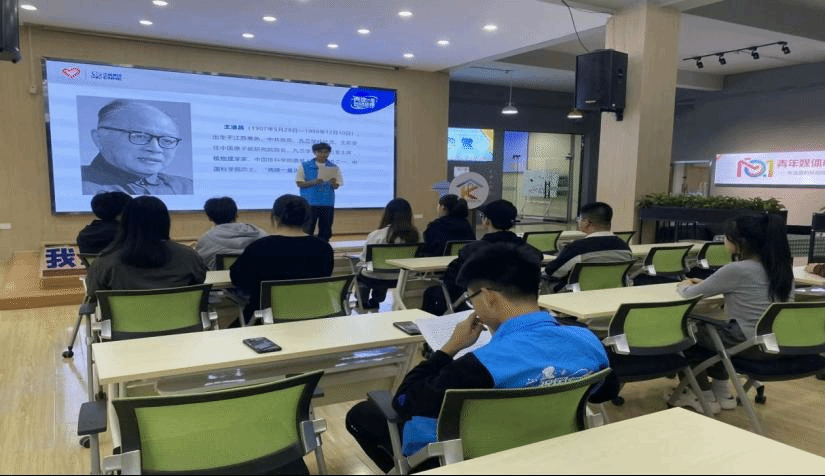 2023年10月10下午,大学生理论宣讲团在宿州学院创客空间开展了关于“两弹一星”精神的宣讲活动。活动中同学们认识了王淦昌这位“两弹一星功勋奖章”的获得者。他是中共党员,九三学社社员,生前曾任中国原子能研究院院长,九三学社中央名誉主席和物理学家,中国核科学的奠基人和开拓者之一,中国科学院院士。王淦昌先生参与了中国原子弹,氢弹原理突破及核武器研制的实验研究和组织领导,是中国核武器研制的主要奠基人之一。曾荣获两项国家自然科学一等奖,国家技术进步特等奖等奖项。对于王淦昌一生的成就,曾有评论说:任何人只要做出其中的任意一项,就足以在中国科技发展乃至世界科技发展历程中名垂青史。王淦昌用自己崇高的精神和人格感召着一代又一代年轻的科技人员。