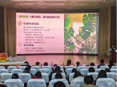 在评选活动进行中,各社团代表依次上台,通过PPT进行展示和演说,简要阐述了社团旨、特色活动、未来展望等。社团代表思路清晰、有理有据,以精彩生动的解说充分展示了各社团的特色与成果。