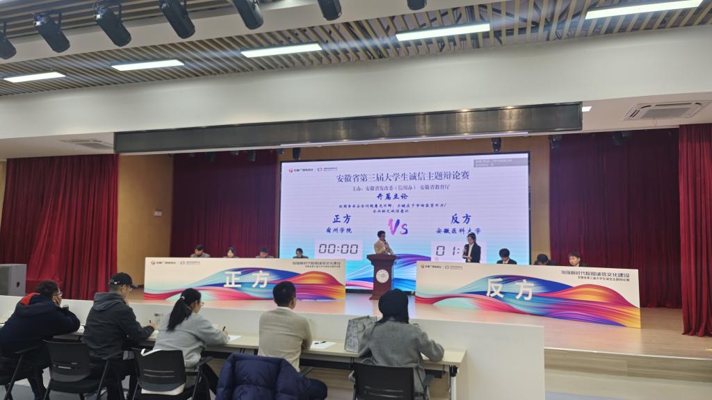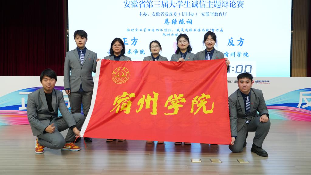 近日,由安徽省发展和改革委员会与安徽省教育厅主办的安徽省第三届大学生诚信辩论赛总决赛在合肥师范学院锦绣校区圆满落幕,我校大学生辩论队以芜湖(繁昌)赛区季军身份参加省总决赛,最终从84支队伍中脱颖而出,荣获一等奖。