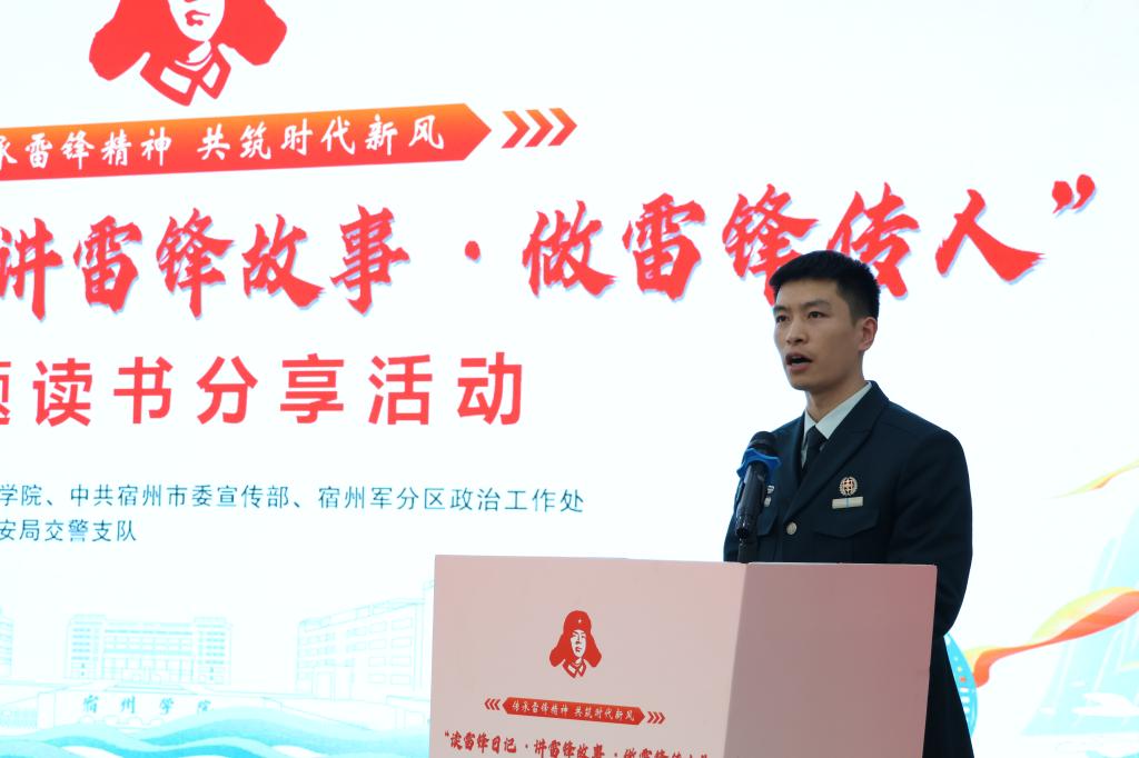 分享会上,来自宿州军分区、市交警支队、宿州学院等8名分享人,围绕雷锋日记、雷锋故事和雷锋精神,结合自身工作、学习和生活实际,从不同角度、不同侧面,用质朴的语言、真挚的情感,讲述了自己对雷锋精神的理解和感悟。他们的分享既有理论深度,又贴近生活实际,让在场的师生深刻感受到了雷锋精神的伟大力量和时代价值。
