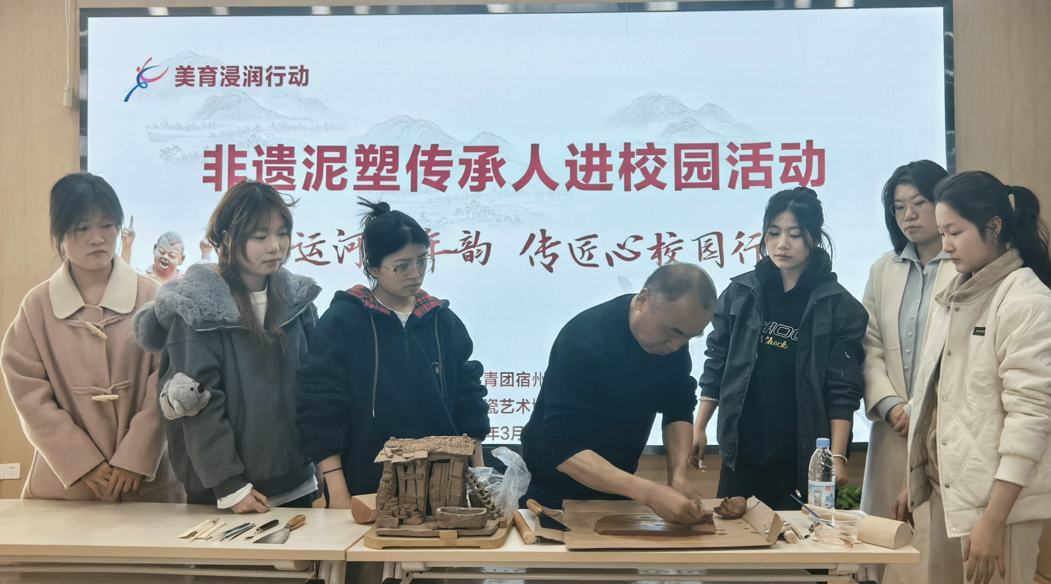 为弘扬大运河文化精神,厚植青年学子文化自信,深化美育与劳动教育融合,近日,宿州学院团委联合宿州学院安徽省大运河文化研究中心主办“塑运河千年韵·传匠心校园行”非遗泥塑传承人进校园活动。活动邀请非遗泥塑传承人刘松携团队走进校园现场授课,通过“手把手”技艺传授、“沉浸式”文化体验,让千年运河文脉在当代青年手中焕发新生机。引导学生感悟运河历史文脉,传承匠人劳动精神,展现学校“五育并举”育人成果。