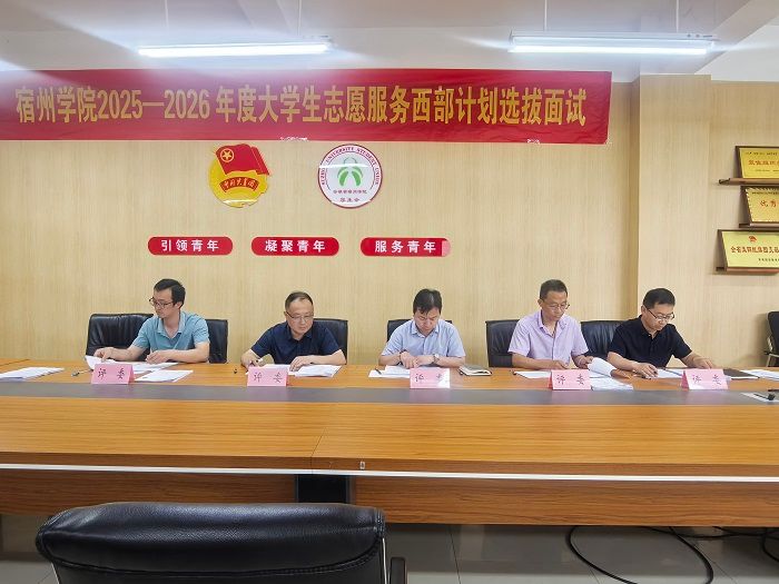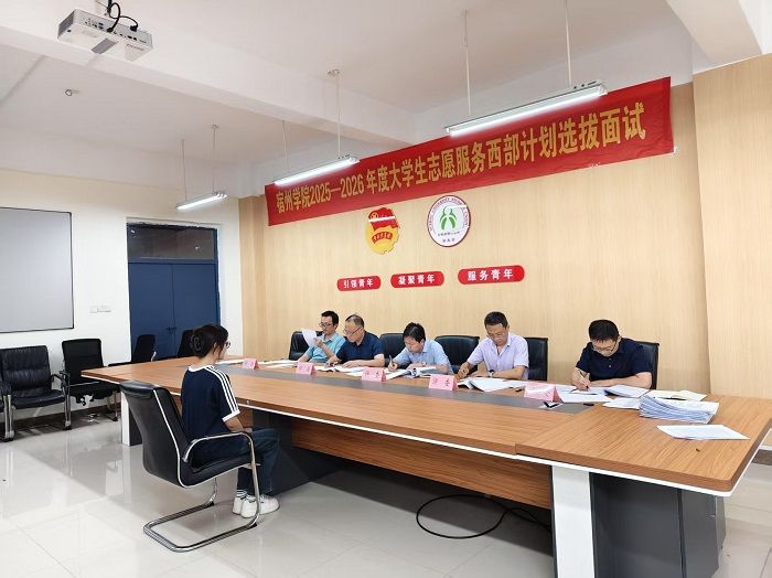 为深入学习贯彻习近平新时代中国特色社会主义思想和党的二十大精神,深入贯彻习近平总书记关于青年工作的重要思想,认真落实《2025—2026 年度大学生志愿服务西部计划安徽省实施方案》的文件要求,进一步引导和鼓励我校优秀毕业生深入基层工作,5月20日下午,校团委于逸夫楼学生会办公室召开2025年大学生志愿服务西部计划暨安徽省大学生志愿服务乡村振兴计划志愿者评审会,党委学生工作部部长甘守飞、就业与校地合作处副处长张晓聪、教务处副处长李伟、纪委办公室纪检监察办公室主任宋辉、组织部副部长张彪担任本次评审会面试官。