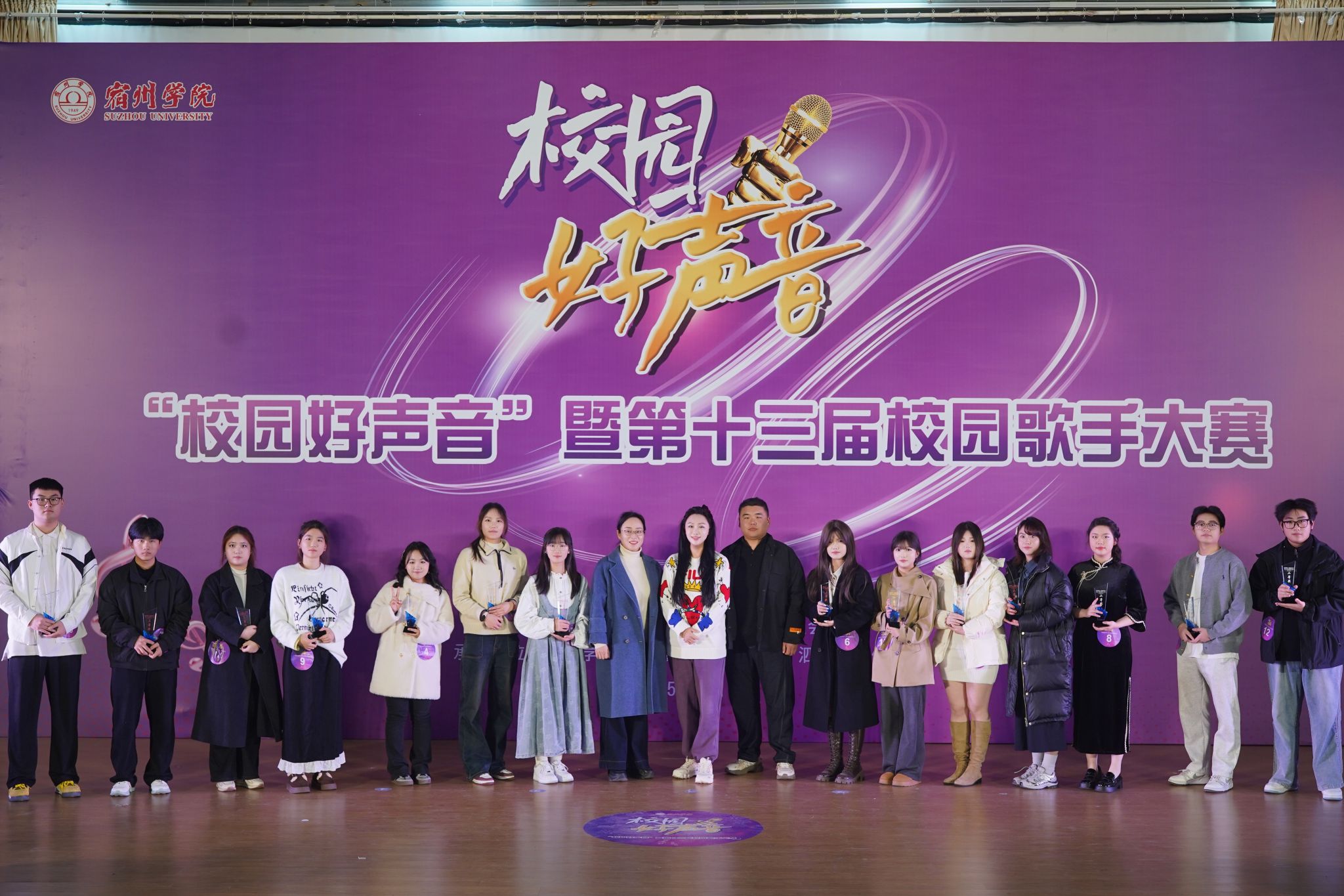 12月19日,宿州学院“校园好声音”暨第十三届校园歌手大赛决赛在大学生活动中心温情开唱。本届大赛自启动以来,共吸引全校数百名歌唱爱好者踊跃报名,经过初赛、复赛的层层筛选与激烈比拼,最终14位实力选手脱颖而出,站上决赛舞台。