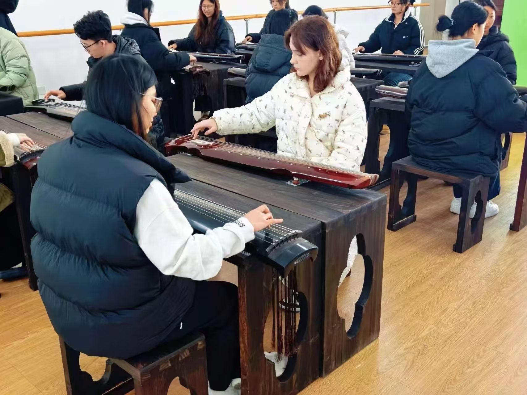 作为校地资源整合的特色育人平台,研习班组建了由宿州学院专业教师、宿州市文旅局行业专家及优秀学子构成的复合型教学团队,实现高校学术资源与地方文旅实践的深度耦合。招生工作覆盖全校各专业,首期吸纳的38名学员中不仅包含不同学科背景的本科生、研究生,更有3名外国留学生加入,形成跨专业、跨文化的多元学习社群,为古琴艺术的跨语境传播注入新生力量。
