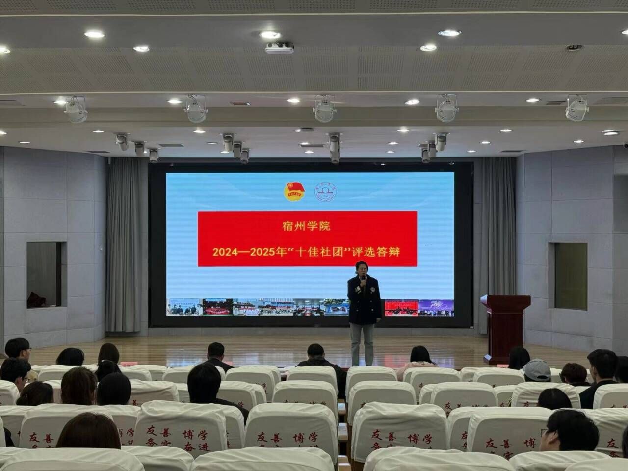 为进一步加强我校学生社团规范化建设,展现我校学子青春风采与社团文化魅力,4月1日,宿州学院在招聘大厅举行2024——2025学年度“十佳社团”评选答辩会。