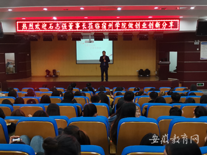 12月4日下午,北京梦想传奇电子商务有限公司董事长石志强应邀到宿州学院作就业创业专题讲座,讲座由招生就业处处长杨刚主持,全院近300名2020届毕业生代表聆听了讲座。