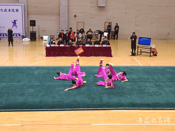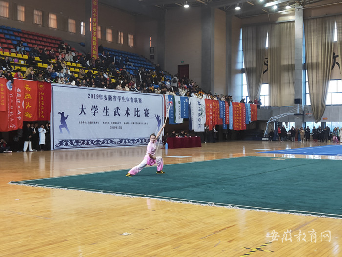 2019年12月7日至8日,2019年安徽省大学生体育联赛武术比赛在阜阳师范大学举行。本次比赛由安徽省教育厅主办、阜阳师范大学承办、安徽省学校体育卫生协会协办,来自安徽大学、合肥工业大学、安徽师范大学等全省51所高校的446名运动员参加了赛场角逐。