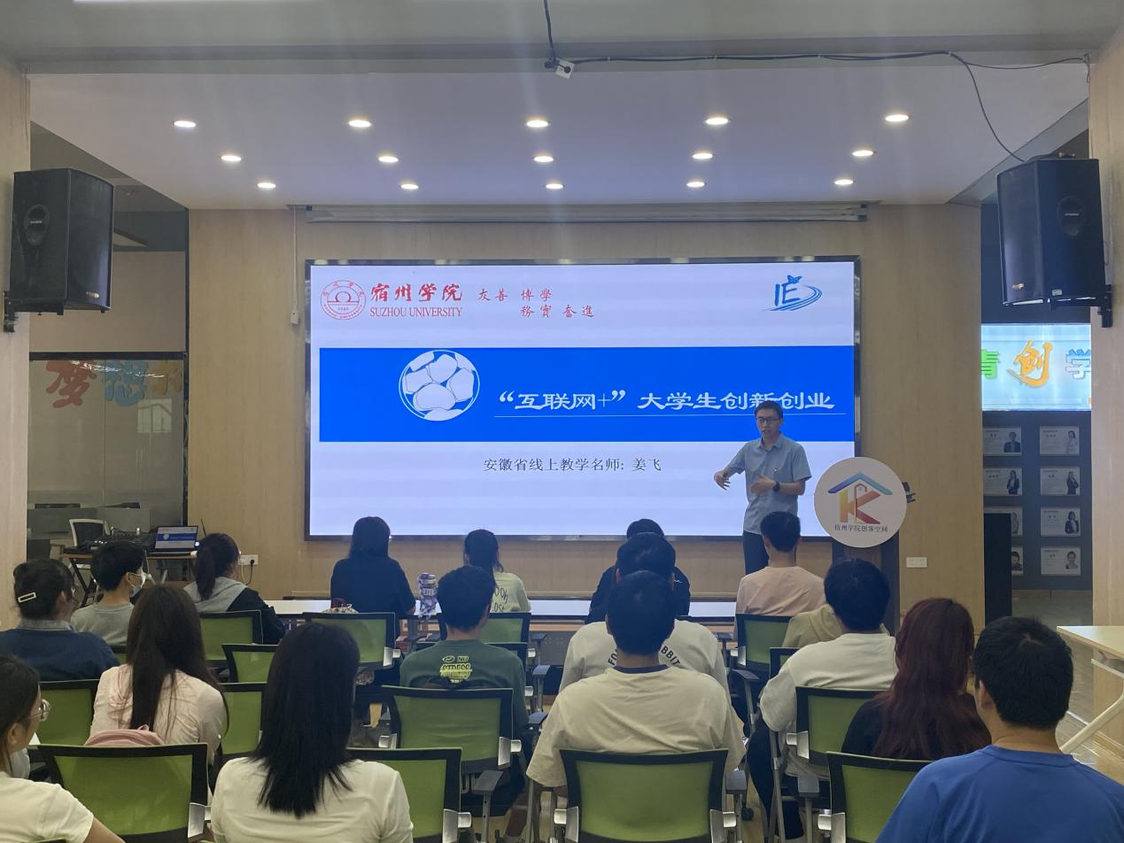 为进一步培育学校优秀创新创业项目,提升我校备战创新创业大赛水平,进一步促进学生留宿就业创业。6月7日下午,宿州学院首期博士开讲-“互联网+”大学生创新创业专题讲座在大学生创业园(创客空间)二楼举行。活动邀请宿州学院信息工程学院网络工程教研室主任、安徽省线上教学名师姜飞教授到场讲座。