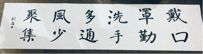美术与设计学院20书法学刘通同学在顺安镇的金山社区参与返乡人员的疫情摸排和防疫志愿活动中将防疫工作与自身的书法专业相结合,为社区书写相应的宣传标语,为防疫献出自己的一份力。