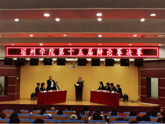 本次辩论赛共有四个阶段,首先由主持人和双方辩手自我介绍,接着由主持人介绍本次辩论赛的主题是“坚持制度自信,绽放靓丽青春”。比赛第一阶段由双方一辩进行开场陈词,表达各自辩题和观点。接下来进入攻辩阶段,由双方三辩四辩进行攻辩,双方辩手攻辩激烈,不相上下。在经历精彩的攻辩阶段后进入了攻辩小结。在攻辩阶段结束后,进入了最精彩的自由攻辩阶段,由双方辩手互相发问,提问阶段十分激烈,场面气氛紧张热烈,双方辩手你来我往互不相让,场下观众掌声连连,喝彩声不断。之后由场下观众进行提问互动,互动将赛场气氛活跃起来。在观众提问后由主持人邀请马克思主义学院教研室主任周恩山进行点评,周恩山老师对双方队伍的辩论过程进行充分肯定,并表达出对于辩题的看法,同时肯定了双方队伍的努力。最后由评委进行打分,最终文学与传媒学院以9.48分获得本届辩论赛冠军,同时化学化工学院以9.04分获得本届辩论赛亚军。外国语学院和数学与统计学院获得本届辩论赛季军。在闭幕式上,由主持人宣布了优秀评委和最佳辩手,以及获得冠军、亚军、季军的队伍,并由各个嘉宾颁发了奖杯和证书,并合影留念。此次宿州学院第十五届大学生辩论赛圆满结束。