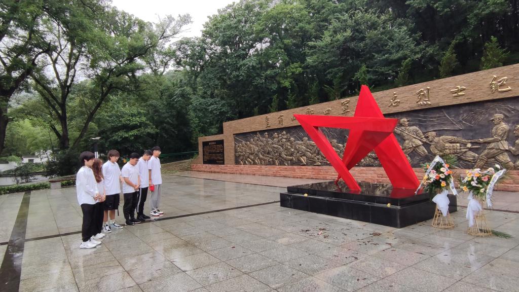 在皇甫山考察时,我们来到了皇甫山新四军烈士纪念广场,冒雨在皇甫山新四军无名烈士纪念广场前整齐肃立,庄重的向烈士们敬献花篮、鞠躬默哀,深切缅怀悼念先烈英灵,大家还认真观看了广场陈列的老一辈无产阶级革命家光辉足迹和革命烈士事迹展览,自觉接受革命精神洗礼。
